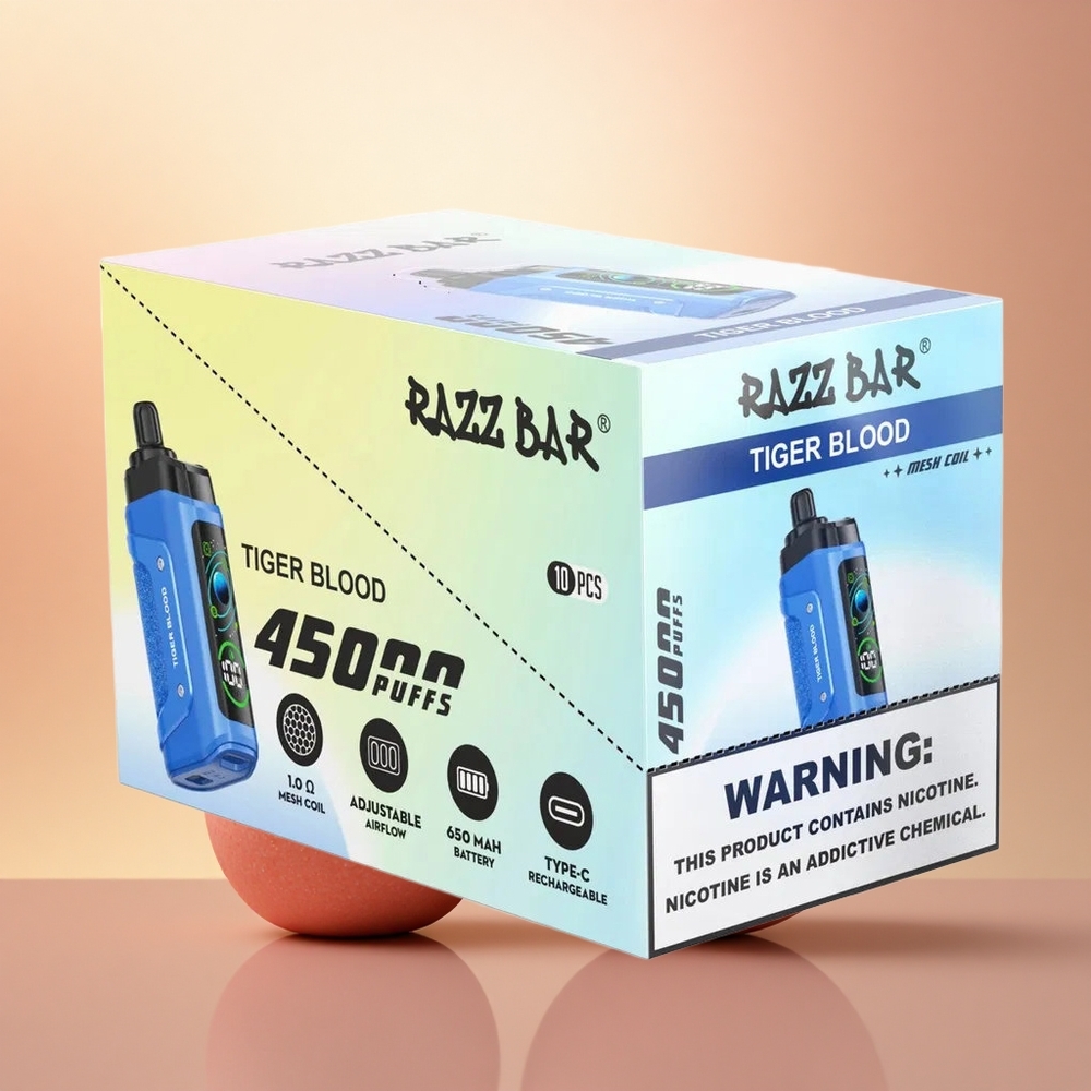 Avastage uus tasemele viidud suitsetamise kogemus Razz Bar 45000 Puffs Ühekordselt Kasutatav Vape’iga, mis ühendab moodsa disaini, isikupärase kasutuskogemuse ja usaldusväärse jõudluse. See on ideaalne valik nii algajatele kui kogenud kasutajatele, pakkudes suurepärast tasakaalu tehnoloogia ja stiili vahel.